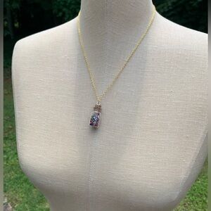 NWT Glass Bottle with Shard Confetti Necklace with Sterling Silver Plated Chain