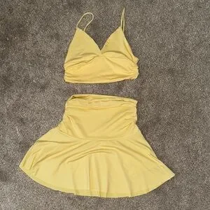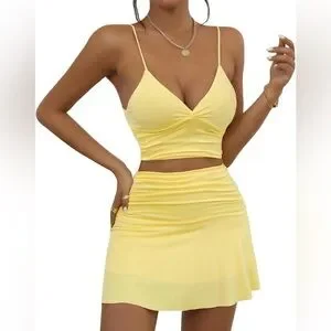 Yellow Women's Two Piece Skirt Set