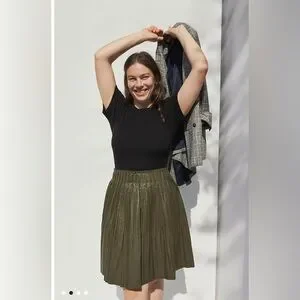 NWT: Anthropologie Ellene Faux Leather Skirt - Size Small- Color is Dark Green- Waist measures Flat 13 inches stretches to 17 inches- Length is 20 inches - Any questions please ask!