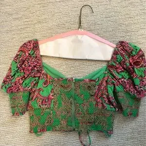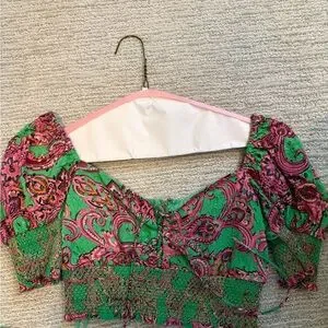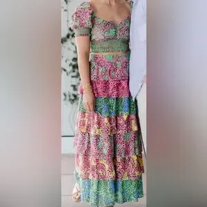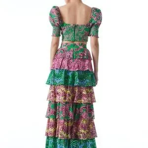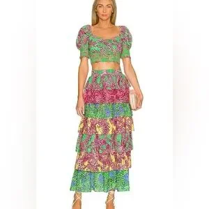 Alice and Olivia Crawford lace up smocked top and Jia ruffled tiered skirt