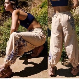 FP Movement by Free People Beige Joggers with Blue Floral Design
