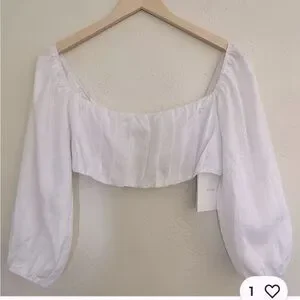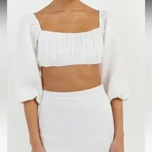 Elegant white crop top. Features puff sleeves. Square neckline. Perfect for any occasion. Size 12 AU, US 8 tts and perfect condition.