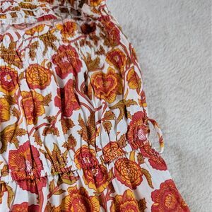 Floral Patterned Mini Tube Dress Women's Small Orange White Strapless Boho