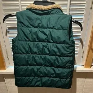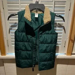 Teal vest with a warm cream sherpa collar. Ideal for layering.