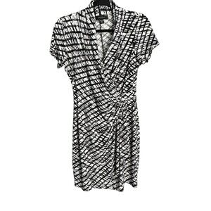 Chic Karen Kane dress with an abstract black and white design. Ideal for versatile styling.