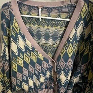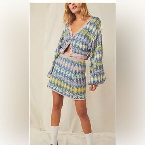 NEW Free People Argyle Sweater Set Size Medium Cardi & Skirt Z316-12