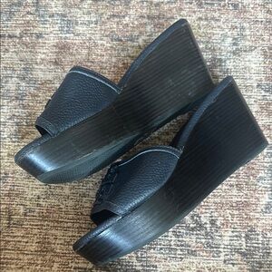 Tory Burch leather Black Wedge Shoes with Cushioned Footbed size 6.5