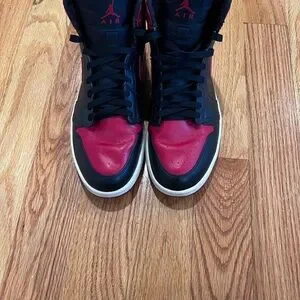 Nike Air Jordan 1 Retro High OG bred from the bulls/celtics pack. These sneakers have a lot of wear left and are pretty good condition, considering age. As you can see in the pictures there is some noticeable Hill drag, but other than the shoes are pretty good condition and shoes come with replacement box