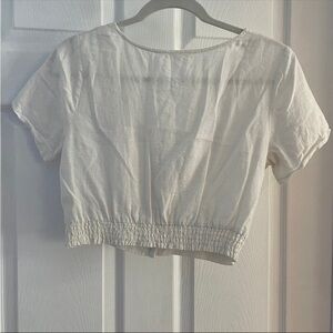 Elevate your style with this chic white button-up crop top. Perfect for casual outings or a night out, this top offers a versatile and trendy look.
