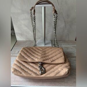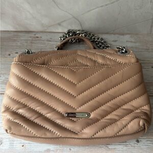 Rebecca Minkoff Tan Quilted Crossbody Bag with Silver Chain