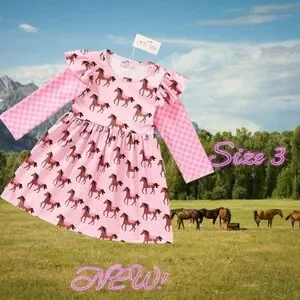 New! Size 3T Pink Horse Print Kids Casual Dress