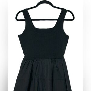 Elegant black midi dress. Sleeveless design. Perfect for any occasion.
