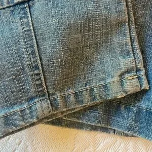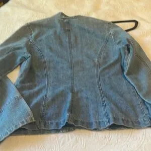 This jacket has six pockets two with flaps, darts and standup collar. It is 21 inches from neck to hem 19 1/2 inches across chest and 17 3/4 inches across hips. The arms are 17 inches from armpit to wrist worn but looks good that way!