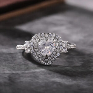 😍Diamond Heart CZ Shiny 14k White Gold Luxury Macro Pave Ring for Women, K852