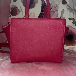 This elegant Steve Madden fuchsia pink handbag is perfect for any occasion. It’s a mini handbag that includes an attachable crossbody strap to wear as a crossbody or shoulder bag as well. It’s the cutest purse for any occasions and is actually very spacious inside. The perfect pink color for any season. Its stylish design and vibrant color make it a must-have accessory.