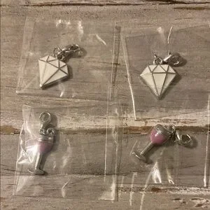 Lot of 4 Silvertone charms with lobster claw clasps