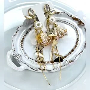 Handmade Freshwater Edison Pearl Butterfly 🦋 Gold Plated Earrings