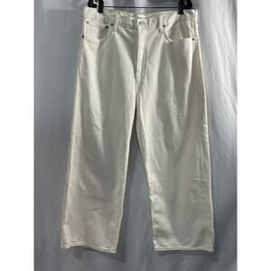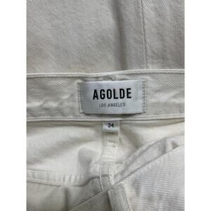Agolde 'Ren' White Cotton Denim Jean Size 34: button fly, 5-pocket styling, rigid denim fabric.