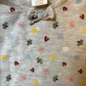 This Gymboree dress combines a chic gray and yellow palette with bugs and florals, perfect for casual wear. Its vibrant style adds a lively touch, ensuring you stand out effortlessly. Designed for comfort, it offers a relaxed fit ideal for everyday activities. Matching diaper cover.