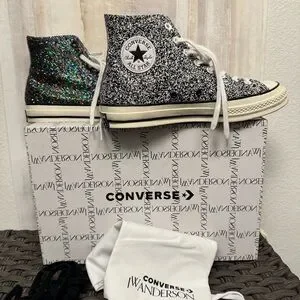 JW Anderson & Converse Glitter High-Top Sneakers - Black and Multicolor