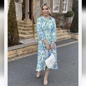 Brand New With Tags Zara Floral Cut Midi Shirt Dress Size Medium White With Blue & Green Floral. Beautiful Button Down Front With Cut Out Side Details & Lapel Collar.