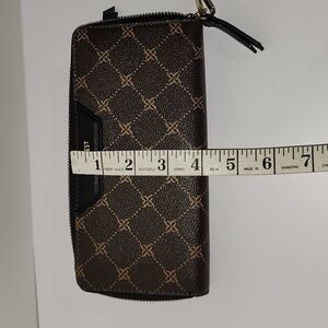 Elegant Nine West wallet with a stylish pattern. Features a secure zip closure. Good Condition