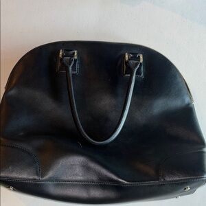 Elegant black leather handbag with gold accents. Perfect for any occasion.