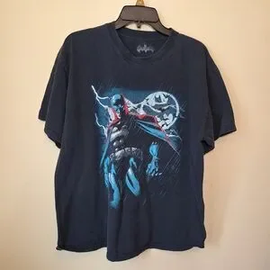 Dark blue t-shirt featuring a Batman graphic design. Perfect for casual wear.