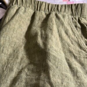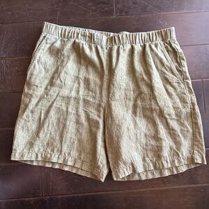 EILEEN FISHER Olive Green Classic LINEN Bermuda Shorts 8” Inseam “XL”