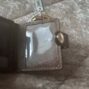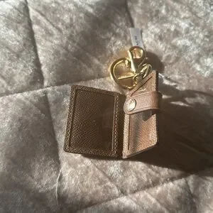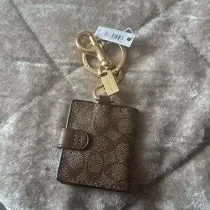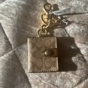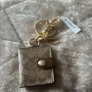 Elevate your accessory game with the Coach Gold and Brown Keychain Wallet.