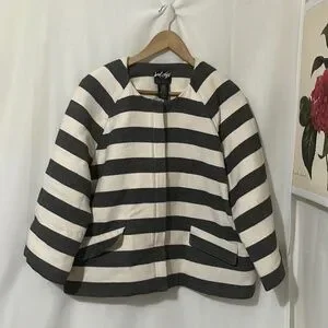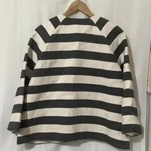 Lord & Taylor 100% Linen Shell Striped Black and White Women's Jacket