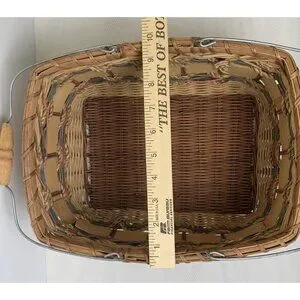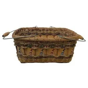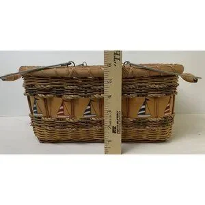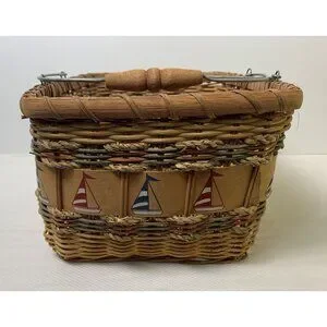 Vintage Nautical-Themed Woven Basket Wire Bail Handles Sailboat Design 10"x12"
