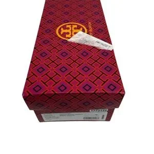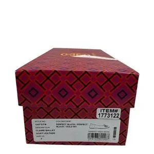 These Tory Burch flats combine luxury and style with their sleek black design accented by striking gold emblems. Crafted for comfort, they feature a rounded toe and low heel, making them perfect for both casual and formal occasions. The elegant detailing and high-quality materials ensure these shoes are a timeless addition to any wardrobe.