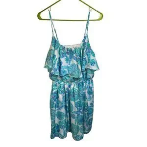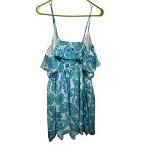 Keywords: Lilly Pulitzer, summer dress, beachwear, casual dress, multicolor, sea urchin pattern, ruffled dress, strappy dress, elastic waistband, pullover dress, women's fashion, summer style, machine washable, Target collaboration, new condition.