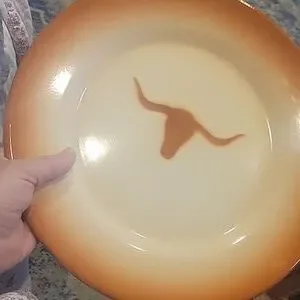 Western Bull/ Enamal/ Metal Base Lg.Dinner Plate Set/7, Apprx.12 In.EUC