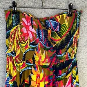 Aerie Strapless Smocked Floral Midi Small Petite Dress