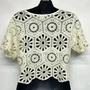 100% cotton, crochet open knit size medium crop top fiber rebellion