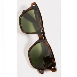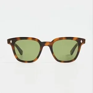 Elegant sunglasses by Garrett Leight. Tortoise shell frame with olive lenses. Ideal for a sophisticated style.