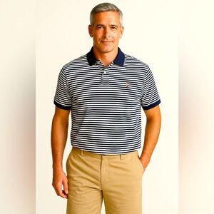 Elevate your wardrobe with this Polo Ralph Lauren Classic Fit Polo Shirt in a timeless navy and white stripe. Made from soft, breathable cotton, this shirt features a classic polo collar, embroidered pony logo, and an authentic Ralph Lauren QR code tag sewn near the neckline to verify authenticity.