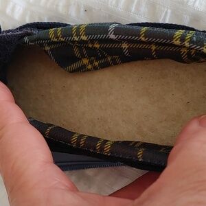 - item is new but some discoloration on one of the insoles and fabric lining is looser is some areas, please see pics