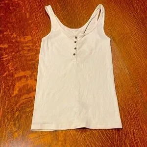 This sleek white tank top from Old Navy features a fitted silhouette and a sleeveless design, making it a versatile addition to any casual wardrobe. The soft, lightweight fabric ensures comfort, while the buttoned henley-style neckline adds a touch of style.
