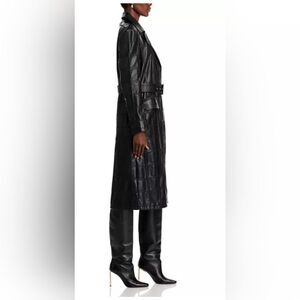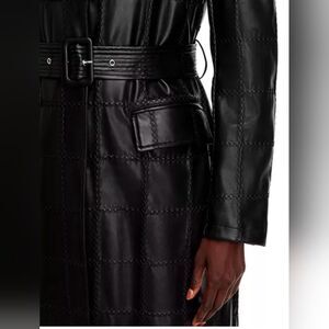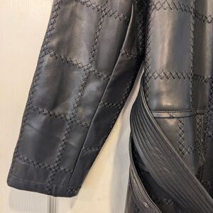 New Bagatelle Faux buttery soft patch black Leather belted Long Trench Coat Sz M