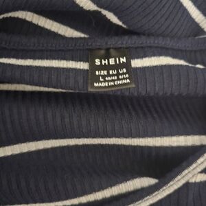 This casual sheath dress from SHEIN features a stylish blue and white color palette with a classic crew neckline. The short sleeves and side slit add a touch of modern flair, making it perfect for relaxed outings. Its midi length and comfortable fit ensure both style and ease of movement.