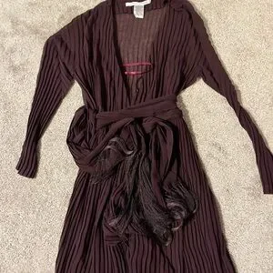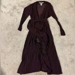 Elevate your wardrobe with this timeless Diane von Fürstenberg wrap dress in a rich deep purple hue. Designed in the iconic wrap silhouette, this knee-length dress features a coordinating tassel belt that cinches the waist for a flattering fit. Comes with a matching slip dress for added coverage and comfort.
