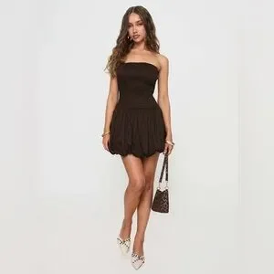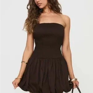 Princess Polly Bonjour Bubble Hem Mini Dress Brown NWT