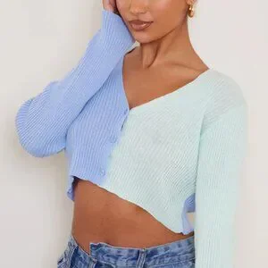 Switch up your look with this cardigan doll. Featuring a baby blue ribbed material with a color block design and a button-up detailing. Team with some light blue mom jeans, fresh white kicks and minimal accessories for a combo we are crushing on.