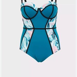 Torrid size 3 Slim Fit underwire Blue and Pink One-Piece Swimsuit