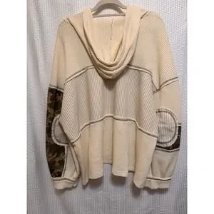 POL Oversized Hoodie Top, Sz Large, Cream Thermal Body, Camo Patch, Balloon Slv