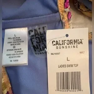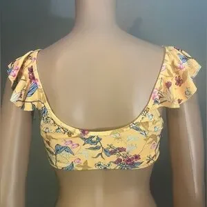 California Sunshine Yellow Floral Lace-Up Bikini Top NWT