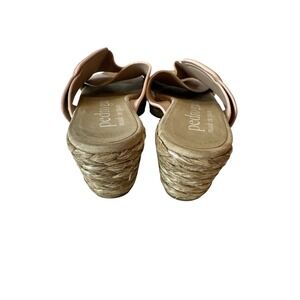 These Pedro Garcia women's sandals in size 36.5 feature a stylish braided raffia sole, designed and made in Spain. The slip-on style with a pink color and leather lining make them a chic and comfortable choice for summer. The designer brand adds a touch of luxury, perfect for a resort or formal occasion. Made with high-quality leather, these sandals are a fashionable and sophisticated addition to any woman's shoe collection.